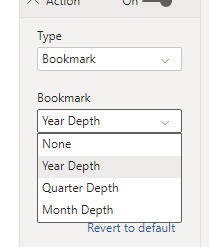 This can be very useful when a report page has slicers or filters for the same dimensions we have for our depth, as the bookmark will not impact the slicers/filters on the page